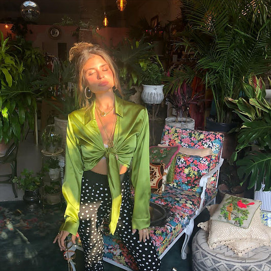 Business Style Long-sleeved Thin Draped Satin Shirt