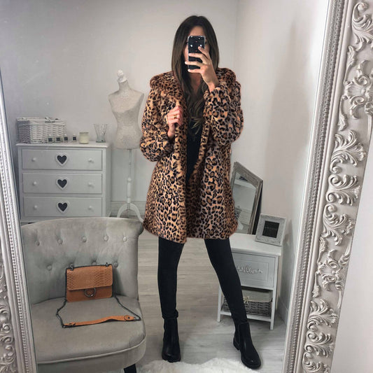 Loose Fitting Mid-Length Hooded Leopard Coat