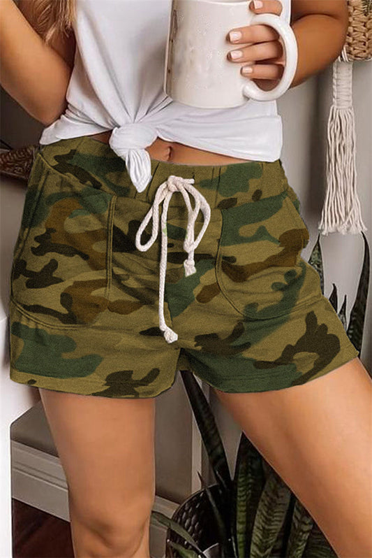 High Waist Button Lace Up Wide Leg Shorts (Plus Sizes)