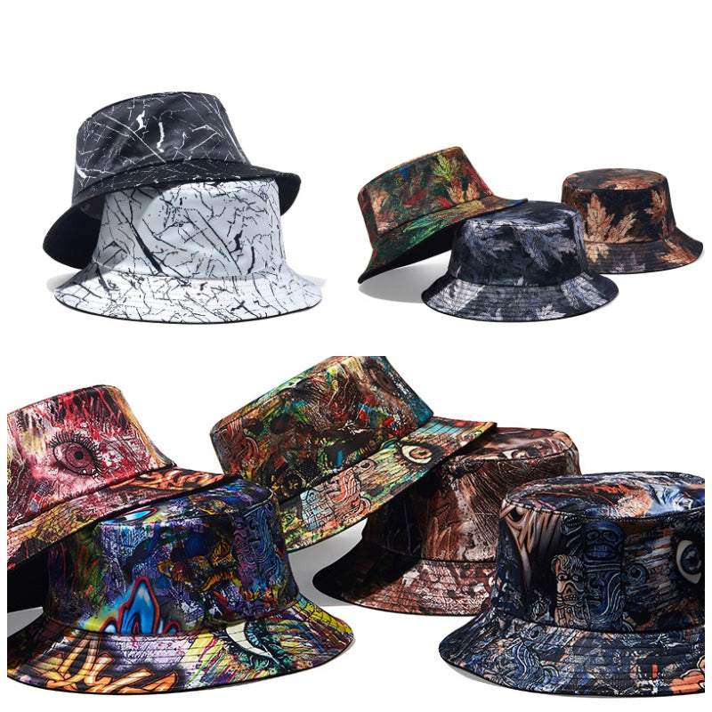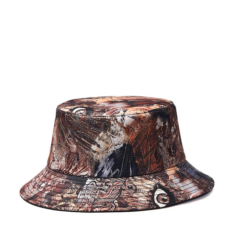 This One Size Bucket Hat features 10 digitally designed prints including Crackle, Graffiti, and Maple Leaf motifs, providing great sun protection. It is constructed from a breathable blend of Poly and Cotton with a short brim and flat top.