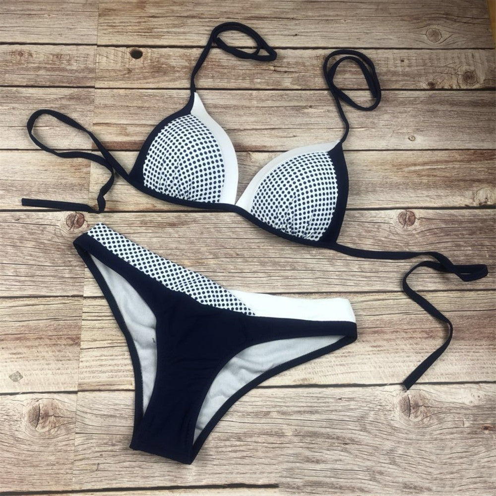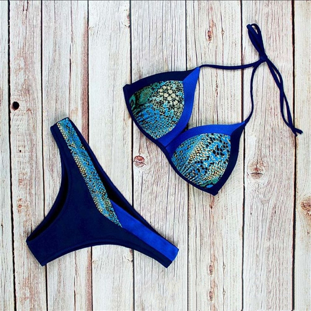 Snakeskin Pattern and Solid Color Split Nylon Bikini