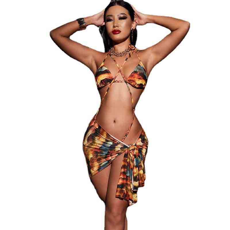 This really is a great three piece bikini set. The tie strings from high to low and the fantastic matching cover up.