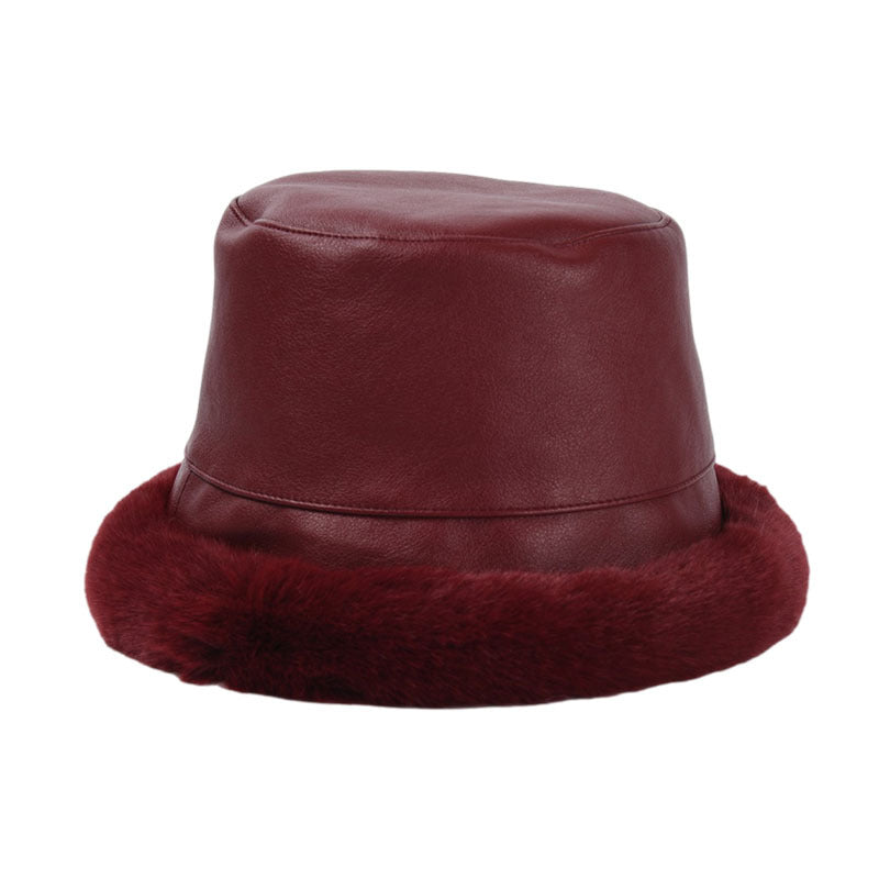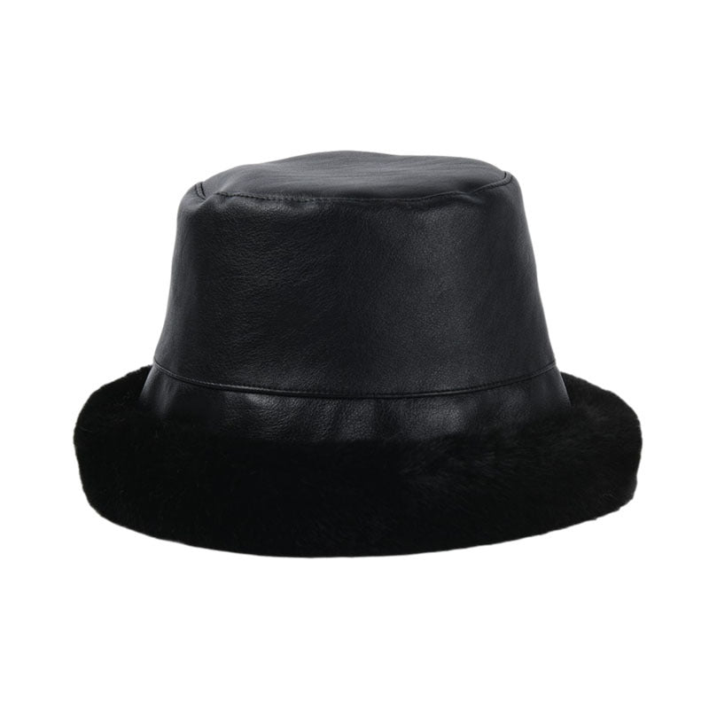 Pu Leather & Faux Fur Trim Flat Top Hat