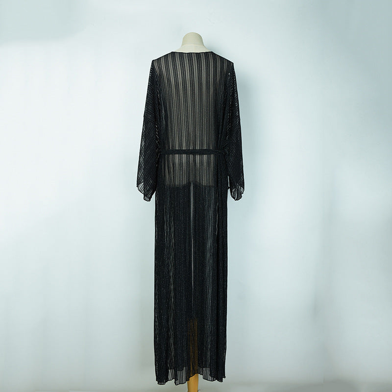 Long Beach Lacy Mesh Sun Shirt/Coverup with Front Tie Waist.