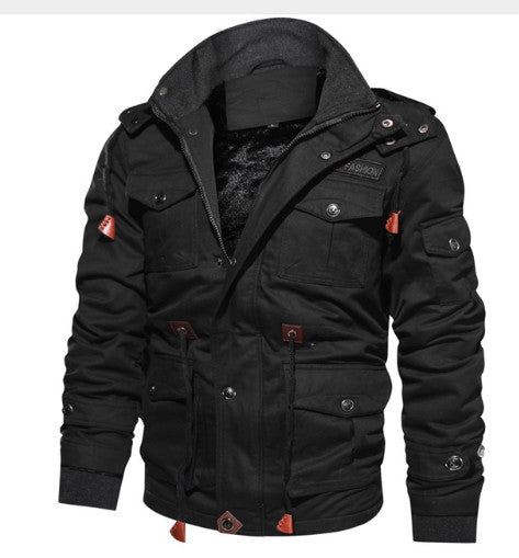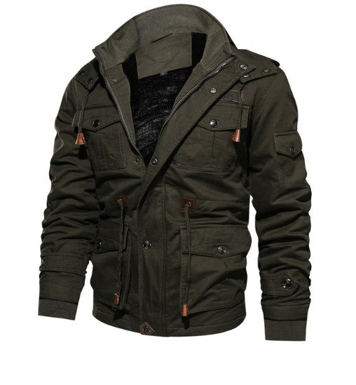 Thick Long-sleeve Washed Cotton Coat w/Hood