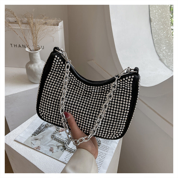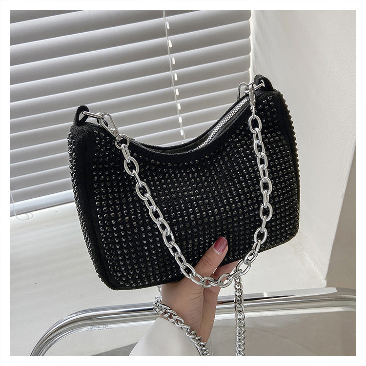Bright Diamond Messenger Bag with Silver Chain Strap