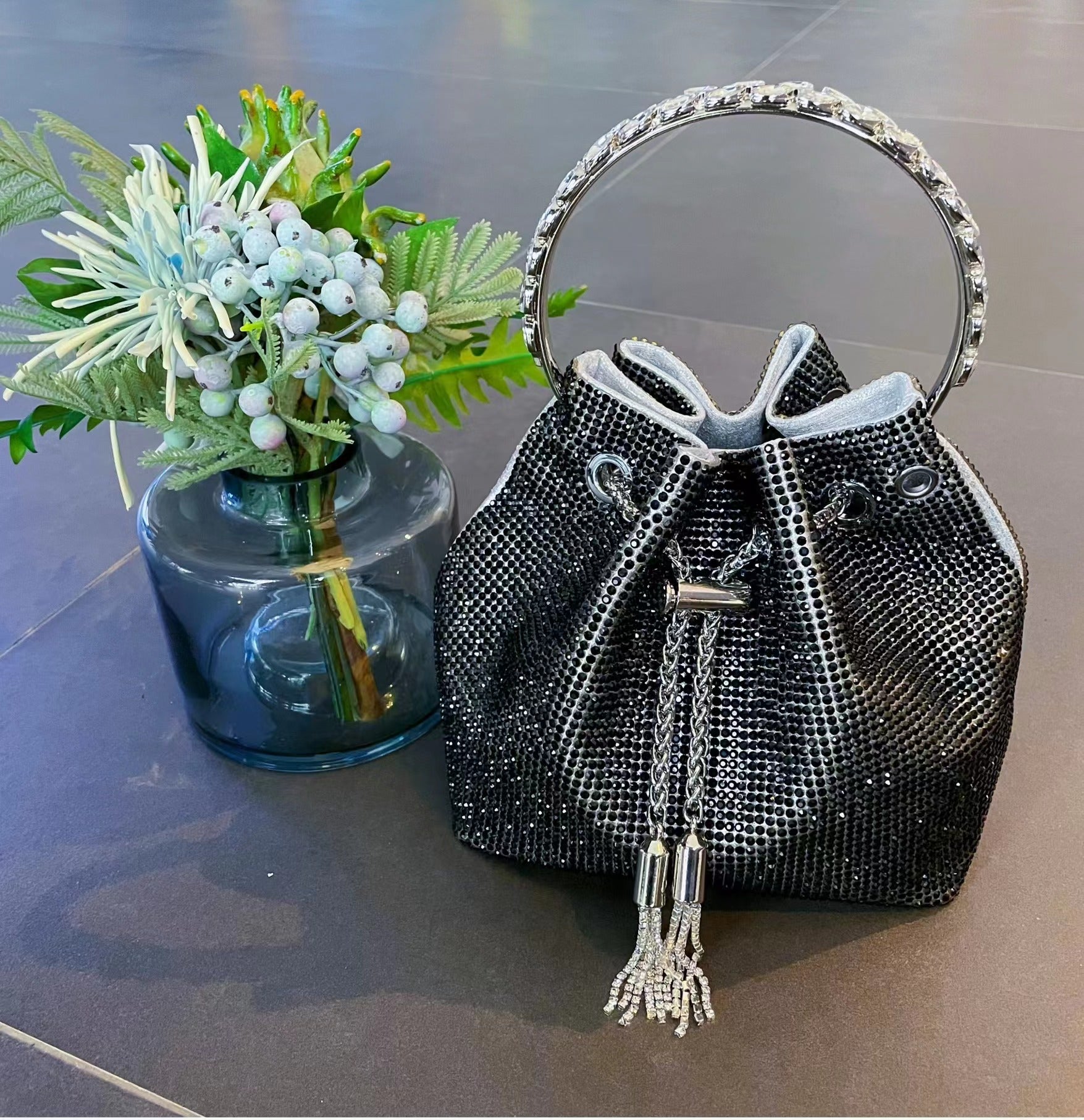 Round Handle Diamond Tassel Bag- Bling-Tastic