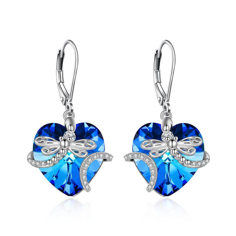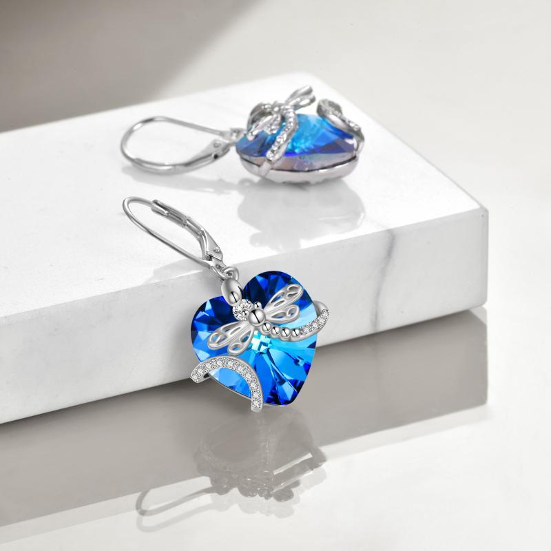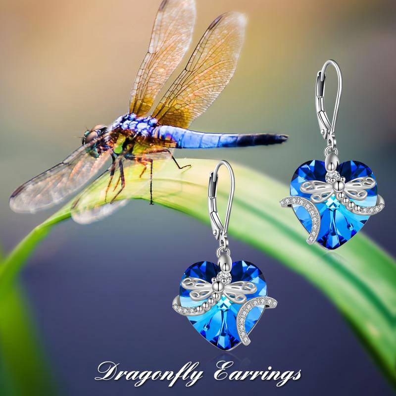 925 Sterling Silver Dragonfly Crystal Pendant Earrings