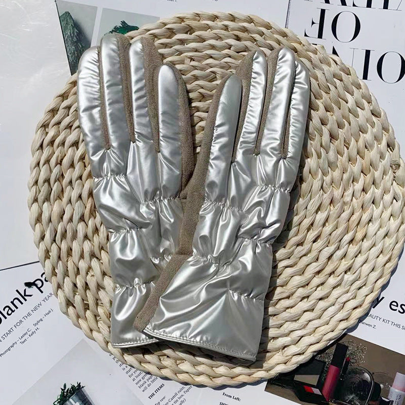 Fashionable and Beautiful Shiny Suede Waterproof Down Riding Gloves